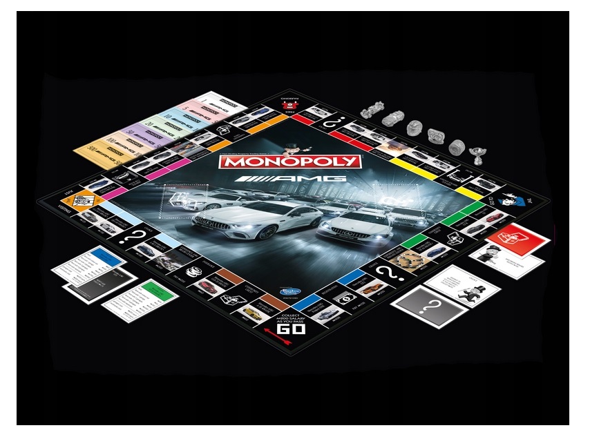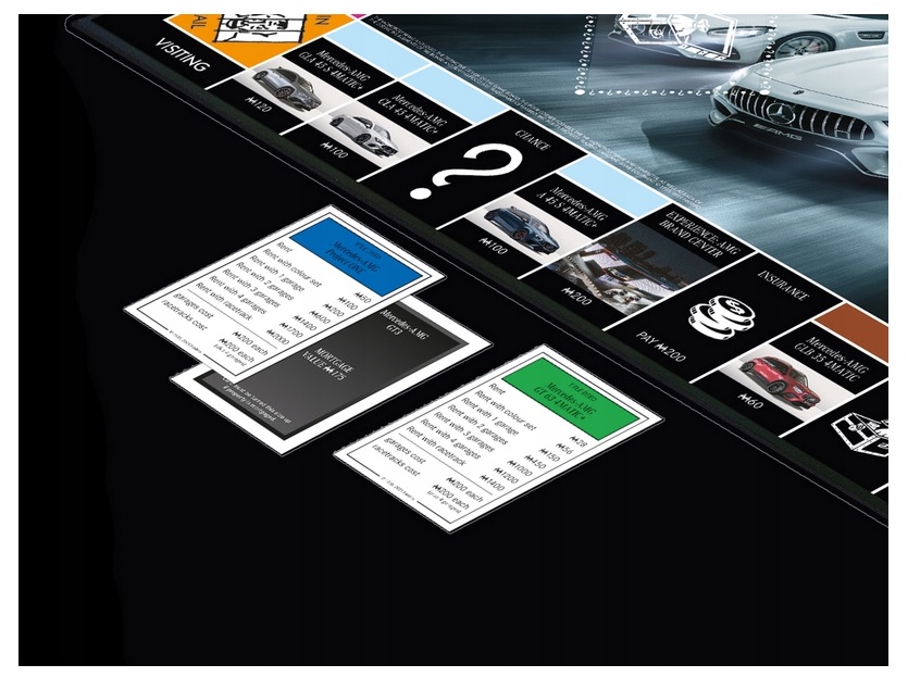 Odświeżona klasyczna gra planszowa: zindywidualizowany Monopoly w języku angielskim, z obszarem gry w stylu Mercedes-AMG i sześcioma specjalnie opracowanymi elementami gry. Obiecująca zabawa w świecie Mercedes-AMG.