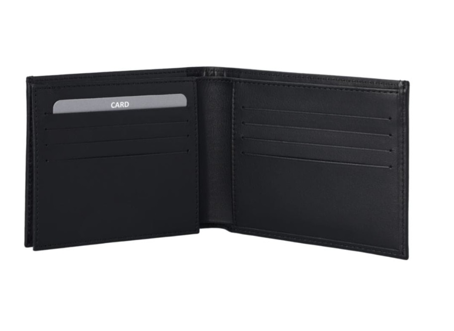 Wykonany w 100% z matowej skóry bydlęcej i wytłoczony na całej powierzchni wzorem rombów, portfel AMG bez kieszeni monety nie tylko wygląda elegancko, ale także oferuje mnóstwo miejsca w dwóch przegródkach na banknoty i dwunastu na karty kredytowe. Aby nie zbierać dobrych ocen za sam wygląd, czarna wyściółka z tonalnym wzorem logo AMG zapewnia ochronę RFID. Blokuje to skanowanie i odczytywanie chipów kart bankowych i kredytowych, pozostających w zamkniętym portfelu. Skuteczna ochrona połączona z eleganckim designem.