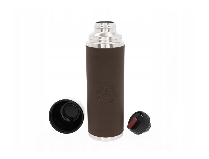 Do pracy, na dłuższe wycieczki czy podczas innych zajęć rekreacyjnych: termos gwarantuje idealną temperaturę napojów. Dzięki podwójnym ściankom ze stali nierdzewnej termos utrzymuje temperaturę gorących napojów, takich jak kawa i herbata, nawet przez dwanaście godzin. Z kolei woda, soki i inne tego typu napoje są doskonale schłodzone nawet przez 24 godziny. Termos ma również izolowany kubek. Schowanie termosu do torby czy plecaka nie wiąże się z ryzykiem wycieku, gdyż jest w 100 % szczelny. Termos wykonany przez emsa dla Mercedes-Benz ma kolor srebrno-brązowy. Na silikonowej oprawie znajduje się wytłoczona historyczna gwiazda.